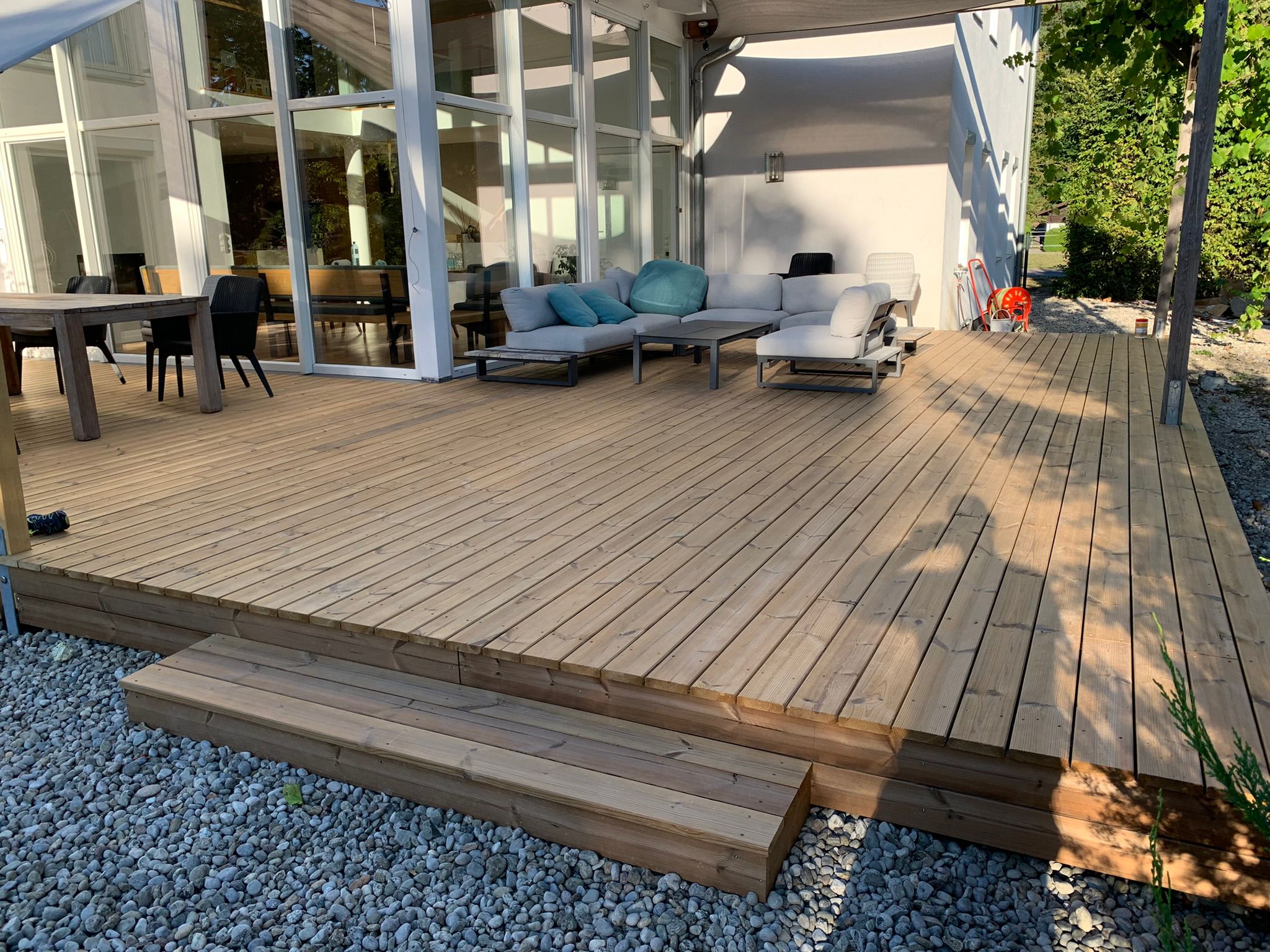 Executăm terase din lemn natural, WPC și chiar bambus, adaptate fiecărui spațiu exterior, de la grădini private, terase de restaurante sau hoteluri, până la spații comerciale sau showroom-uri. Lucrările noastre sunt apreciate pentru durabilitatea lor, estetica occidentală și integrarea perfectă în peisaj. Beneficiind de experiență acumulată în Austria, unde am realizat numeroase terase în zone montane, oferim soluții eficiente pentru orice condiții climatice.