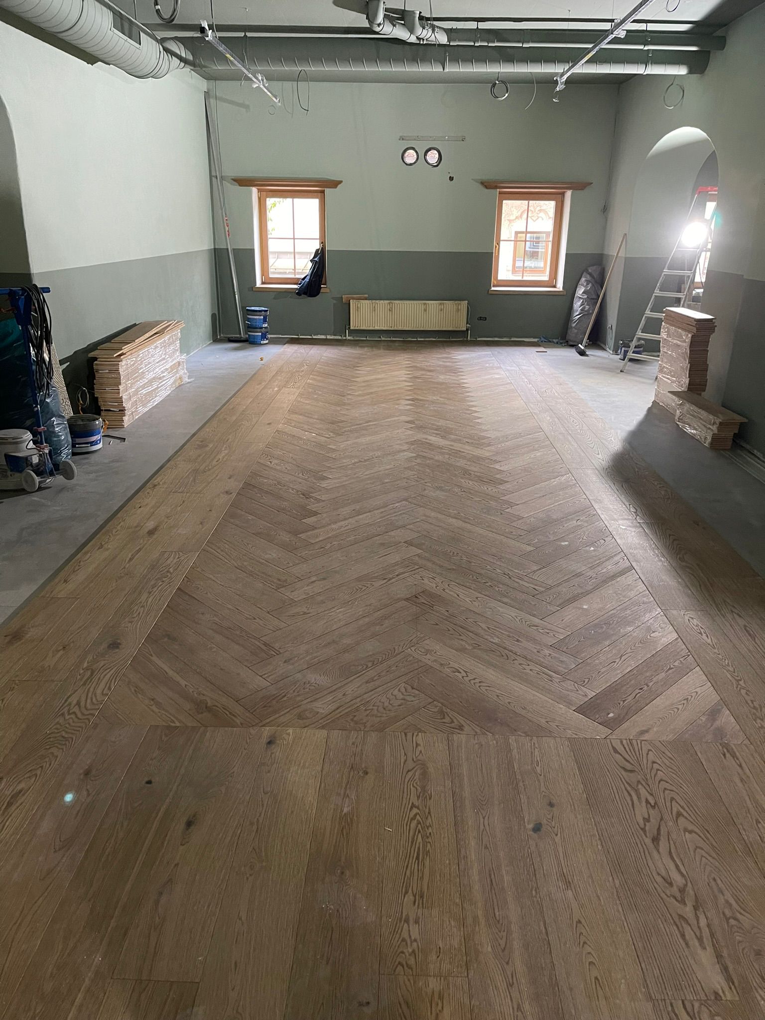 Da, pe lângă pardoseli, realizăm mobilier personalizat din lemn masiv, uși din lemn antic restaurat și placări de pereți cu lemn sau alte materiale premium, toate integrate perfect în proiecte de amenajare interioară și exterioară. Avem o pasiune pentru lucrul cu lemnul, pe care o îmbinăm cu experiența dobândită în vestul Europei, unde am realizat astfel de lucrări în locații de lux și spații de patrimoniu.